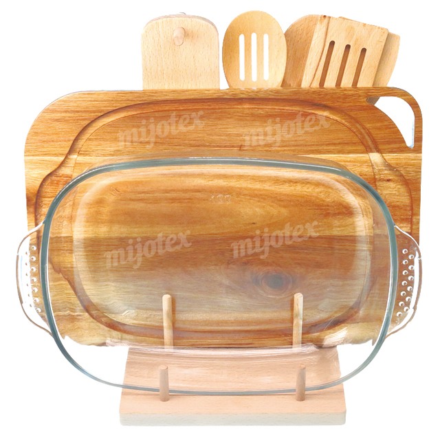 BAKING DISH WITH WOOD STANDER & LID & CUTLERY & TEXITLIE ST1+WPH4/WPH5